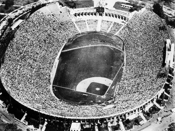 | (1959)* - Crowds packed the Coliseum to watch the new team in town, the Los Angeles Dodgers, play from 1958 to 1961 setting new records for attendance. |