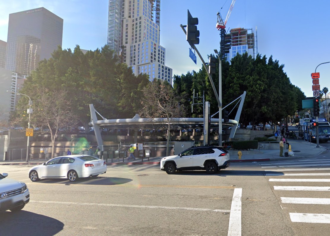 | (2022)* - Google Earth view of Bunker Hill (North) with the Hollywood Hills in the background. |