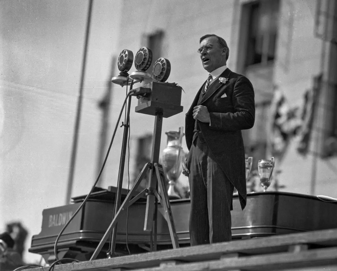 | (1928)* - Mayor George E. Cryer speaks during the dedication ceremonies for the new Los Angeles City Hall. (Los Angeles Times Archive / UCLA) |
