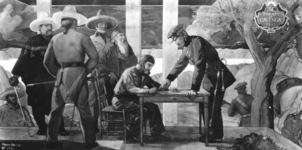 | (1931)* - Hugo Ballin's mural depicting the singing of the Treaty of Cahuenga is mounted in the lobby of the Guarantee Trust Building at 5th and Hill Streets. |