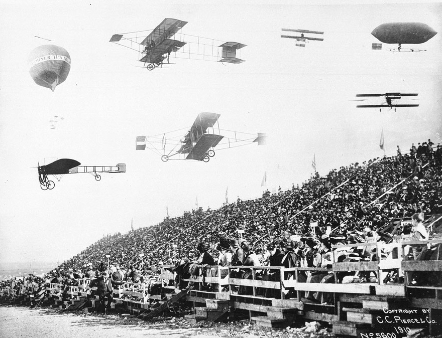 | (1932)* - Spectators attentively watch as four rowing teams with coxswains compete in the 8 oar rowing event at the Long Beach Marine Stadium during the 1932 Olympic Games. The area's oil richness is revealed by the numerous derricks present behind the stadium. Location: Pete Archer Rowing Center, End of Boathouse Lane, Nieto Ave & Appian Way, Long Beach. |