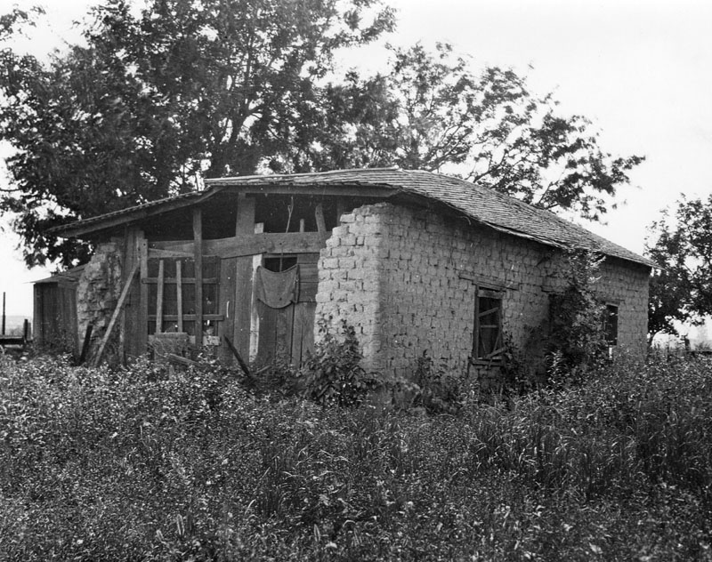 | (1936)* - Exterior view of the Tomas Sanchez adobe, La Casa Adobe de San Rafael, Glendale, in June 1936, following restoration in 1932. The photo shows its Monterey-style corridor (covered porch). It was built by Tomas Sanchez, sheriff of L.A. County, in 1849 on Rancho San Rafael land owned by Fernando and Rafaela Verdugo. It stands in a city park and is now furnished with furniture, cooking utensils and other relics of its time. Location:1330 Dorothy Dr, Glendale. |