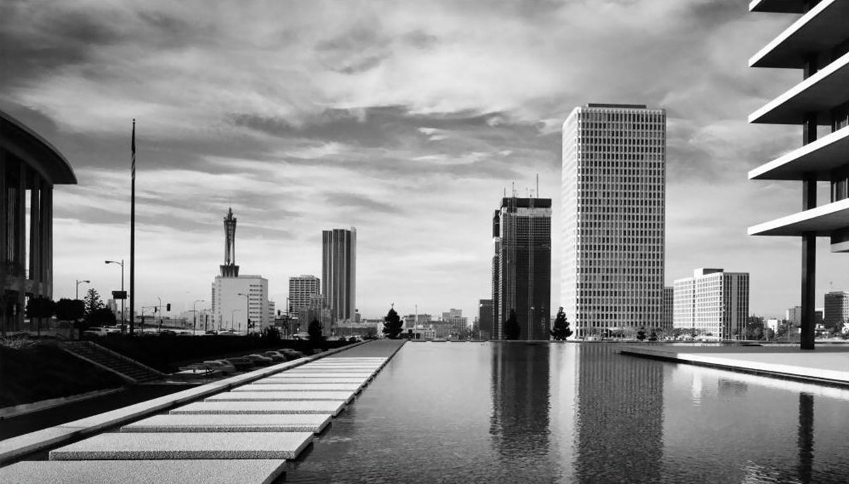 Historical Notes In the mid-1950s, Bunker Hill remained a fading residential district overlooking the Civic Center. Redevelopment cleared the area in the late 1950s, and by 1970 the hill had been completely reshaped. The new Department of Water and Power Building, Music Center, and County Courthouse redefined the city’s western skyline and shifted downtown’s focus from industry and housing to government and culture. The contrast between these two eras captures Los Angeles’ ongoing quest for modernization and identity. |