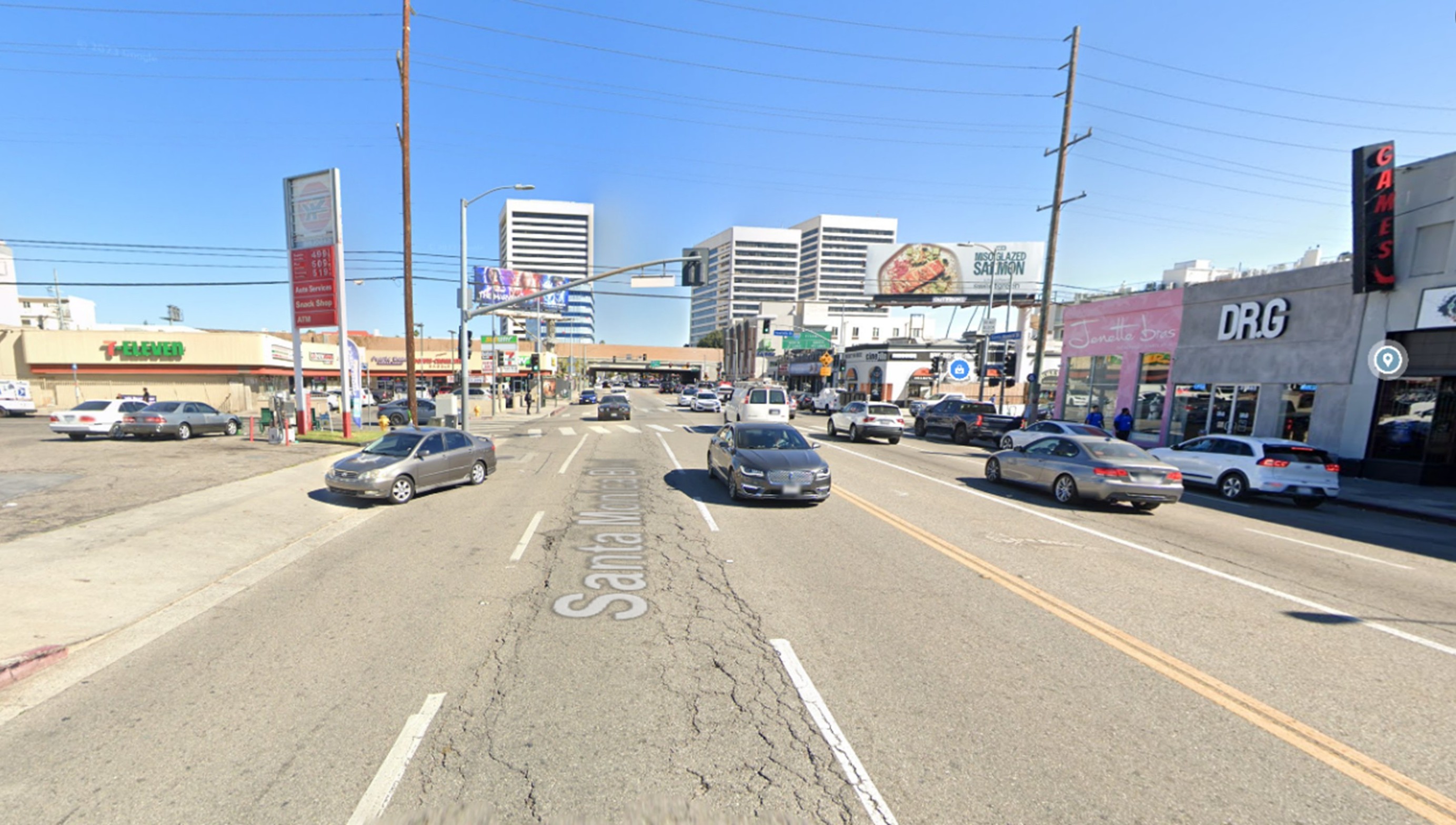 (2024)* - Looking east on Sunset Boulevard from near Occidental Boulevard (about 2751 Sunset Boulevard).