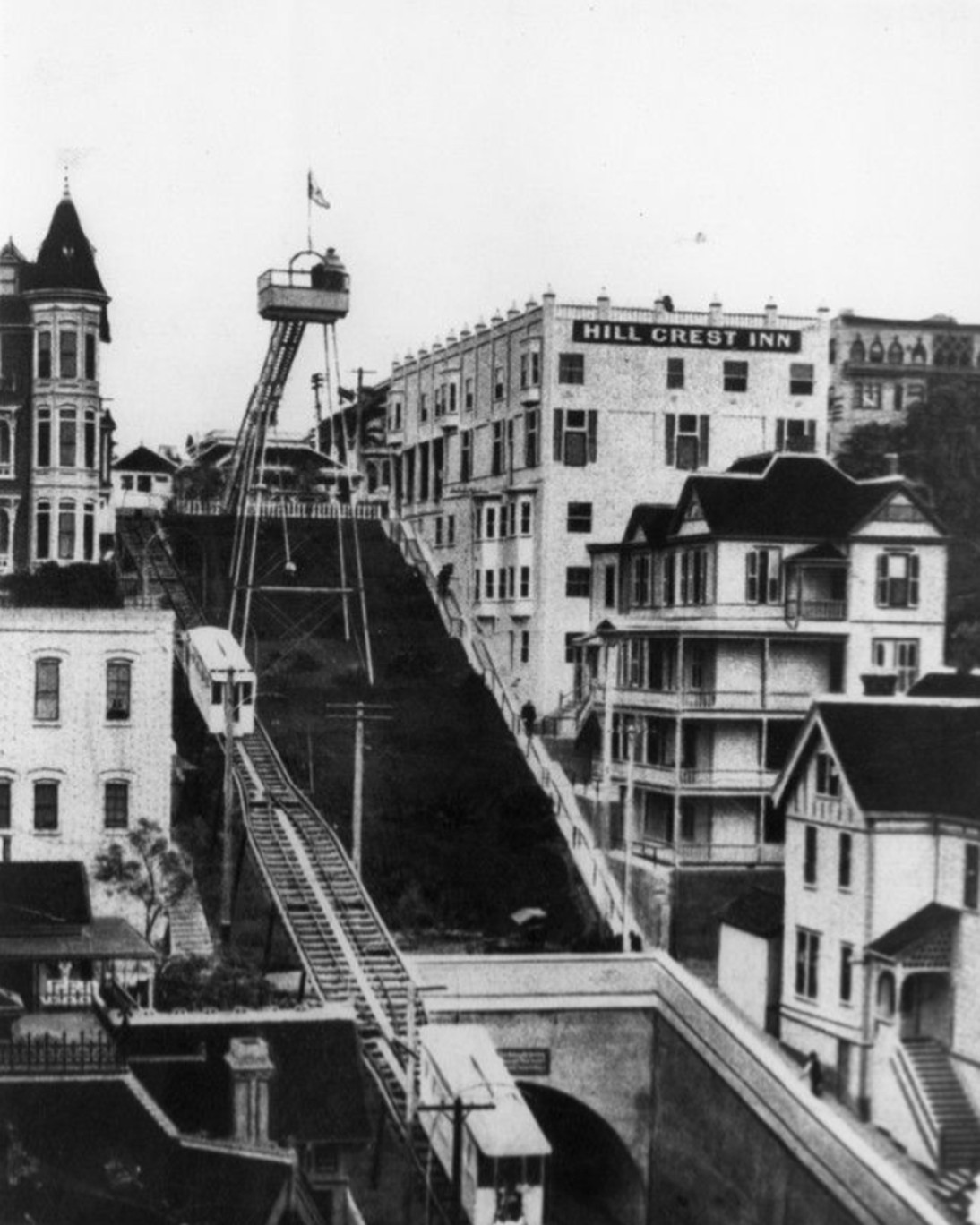 Historical Notes The railway consisted of two separate funiculars. One began at the base of the now-abandoned Avalon Amphitheater and ascended the hill on the southwestern side of Avalon Bay to a point known as Buena Vista Point. The other descended the opposite side of the hill to Pebbly Beach on Lovers Cove. Passengers could disembark at the summit for refreshments in a small tea house or continue on to Lovers Cove for a ride in a glass-bottomed boat. Variably known as the Santa Catalina Incline Railway, the Island Mountain Railway, and--confusingly--Angels Flight, the railway closed in 1918, several years after a fire devastated Avalon and depressed the tourist business. The railway briefly reopened in the 1920s but closed finally in 1923. Its ruins are still visible along the old right-of-way to this day.**# |
