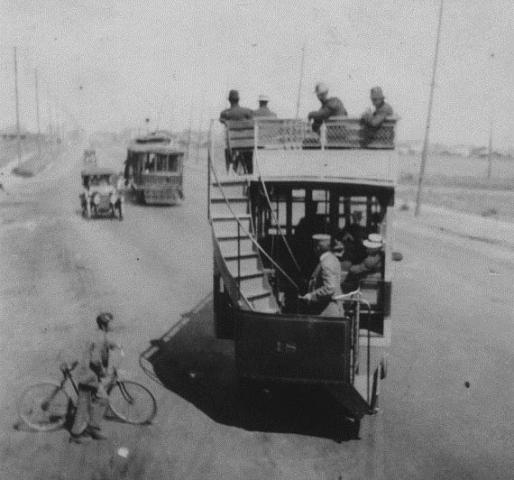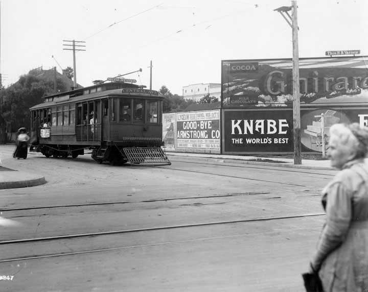 | (1914)* - View of the "Dinkey" that ran from Glendale to the center of Eagle Rock for nearly twenty years. |