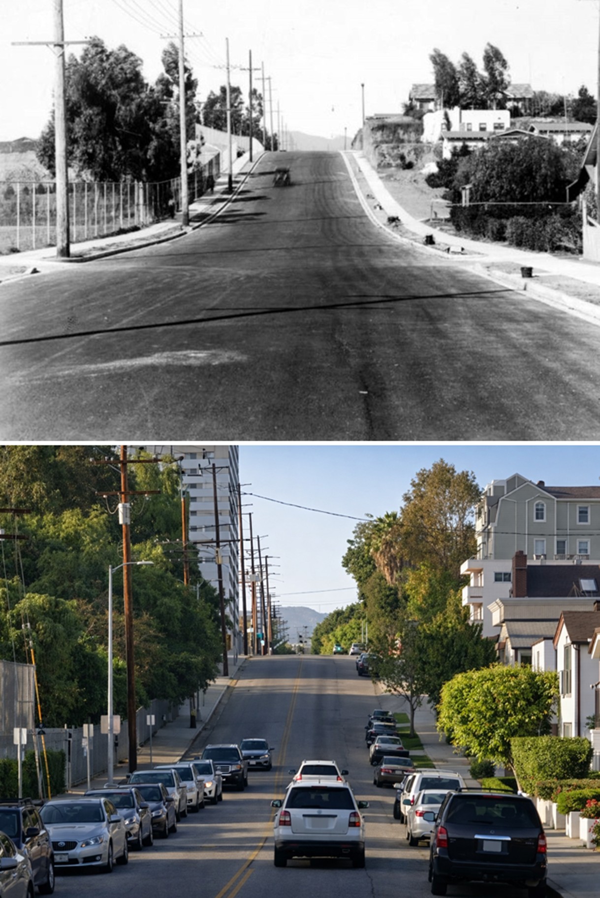 | (1931 vs. 2022)* – Looking north on La Cienega Blvd toward Beverly Blvd. |