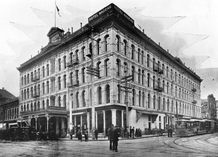 Historical Notes Remi Nadeau opened the hotel in 1882 with a grand ball attended by the Southland's elite. He bought the site in 1872 for the 'un-heard' of sum of $20,000. The Nadeau boasted of the first electric elevator to be installed in Los Angeles. Some of the guests at the hotel have included: Anna Held, General Nelson A. Miles, Lillian Russell, and John L. Sullivan (one-time heavyweight champion.^^* |