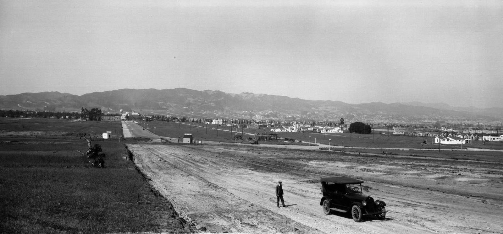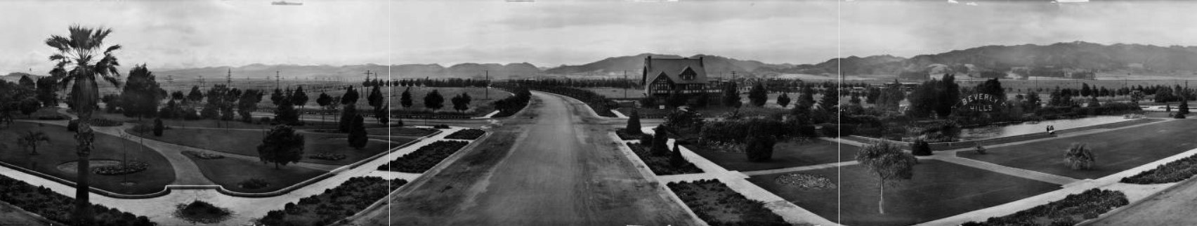 | (1913)^ - Panoramic view showing the Beverly Hills countryside with just a few homes and dirt roads. |