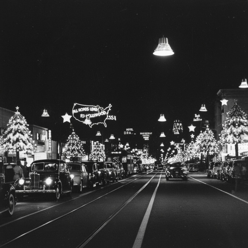 Historical Notes The annual transformation of Hollywood Boulevard into a festive wonderland not only celebrated the holiday season but also encouraged holiday shopping in the area. However, many of these decorative metal trees were eventually repurposed during World War II to support the war effort. Despite this loss, the tradition of decorating Hollywood Boulevard for Christmas left a lasting legacy and contributed to the boulevard's identity as a center of entertainment and celebration. |
