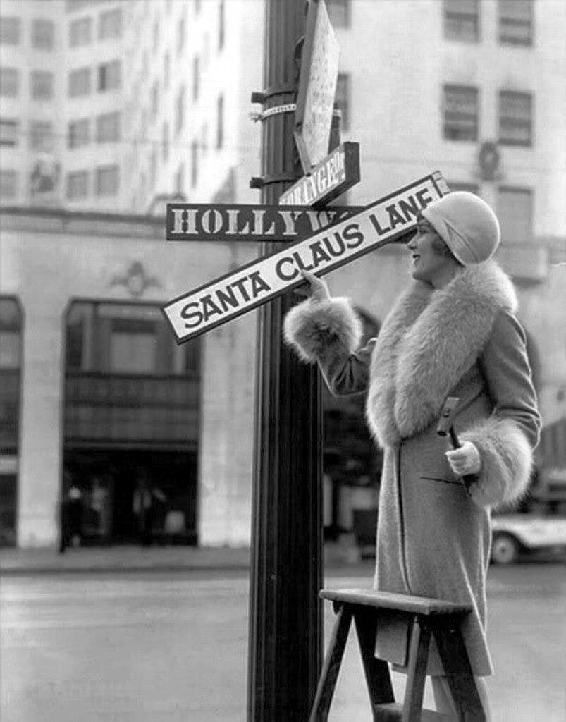 Historical Notes Beginning in 1928 Hollywood merchants and the Hollywood Chamber of Commerce turned a one mile stretch of Hollywood Boulevard into what they called Santa Claus Lane in an effort to draw more shoppers during the holiday season. They planted live fir trees brought in from the mountains, strung them with lights, and created a daily parade that featured Santa Claus riding along the boulevard with a different film star. The first parade was a simple event with Santa and actress Jeanette Loff, but it quickly became a local tradition. Publicity photos of major stars like Mary Pickford changing the street signs helped link Santa Claus Lane to Hollywood glamour and encouraged visitors to see Christmas on Hollywood Boulevard as something special. |