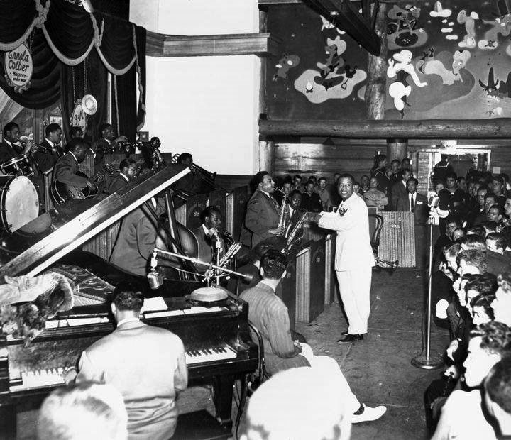 | (1939)* - The Los Angeles Philharmonic Orchestra performs on a stage to an audience at the CBS Columbia Square building for a KNX radio broadcast. |