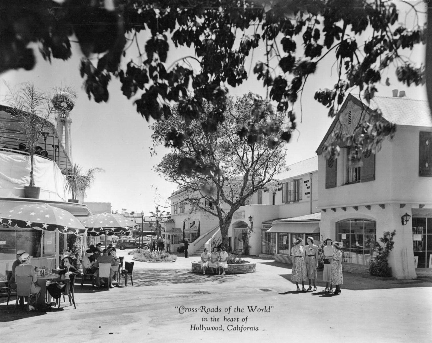 Historical Notes The Crossroads of the World was inaugurated on October 29, 1936. The new shopping center was not a full-blown success, but it became an excellent model for outdoors malls across the world. |