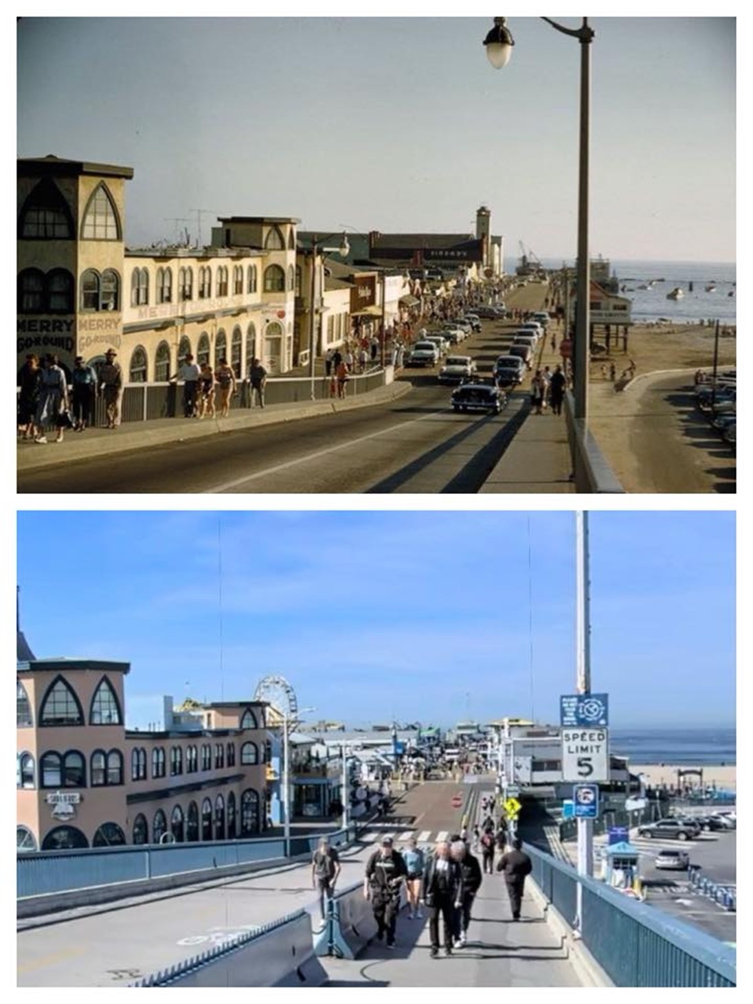 | (1958 vs. 2018)* – Then & Now: Santa Monica Pier. Photo comparison by Trey Callaway. |