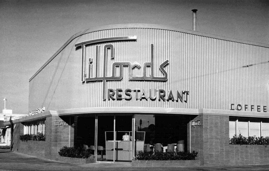 Historical Notes This is the same corner where the 1950s Johnie's Coffee Shop now stands. Across the street is the old May Company department store building which is now a part of LACMA/the Hollywood Museum. Going back further to the early 1900s, this is where the Chaplin Airfield was once located (Click HERE to see more in Aviation in Early L.A.). |